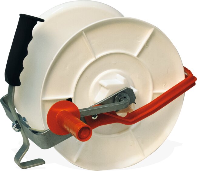 Grande capacité (800 m de fil / 300 m de ruban) - index blocage bobine - guide fil - poignée tournante