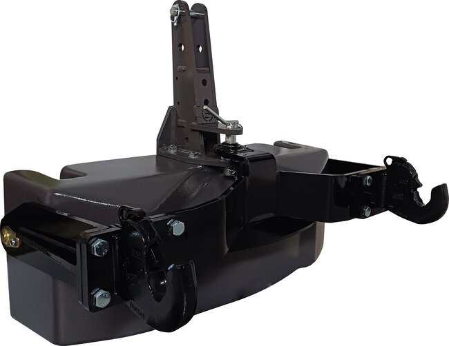 Compatible à l'avant et à l'arrière grâce à son attelage à chape et à l'aspect compact, la masse monobloc donne la possibilité de porter jusqu’à 4 tonnes et de tracter des outils jusqu’à 12 T pour gagner un maximum d’adhérence.